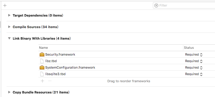 libz.dylib,Security.framework,SystemConfiguration.framework,libsqlite3.tbd