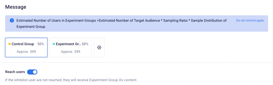 On the other hand, if you choose not to reach users in the control group, it can be used to evaluate the effectiveness of your operation strategies on users. You can observe whether the experiment group shows a significant improvement in target conversion compared to the control group.
