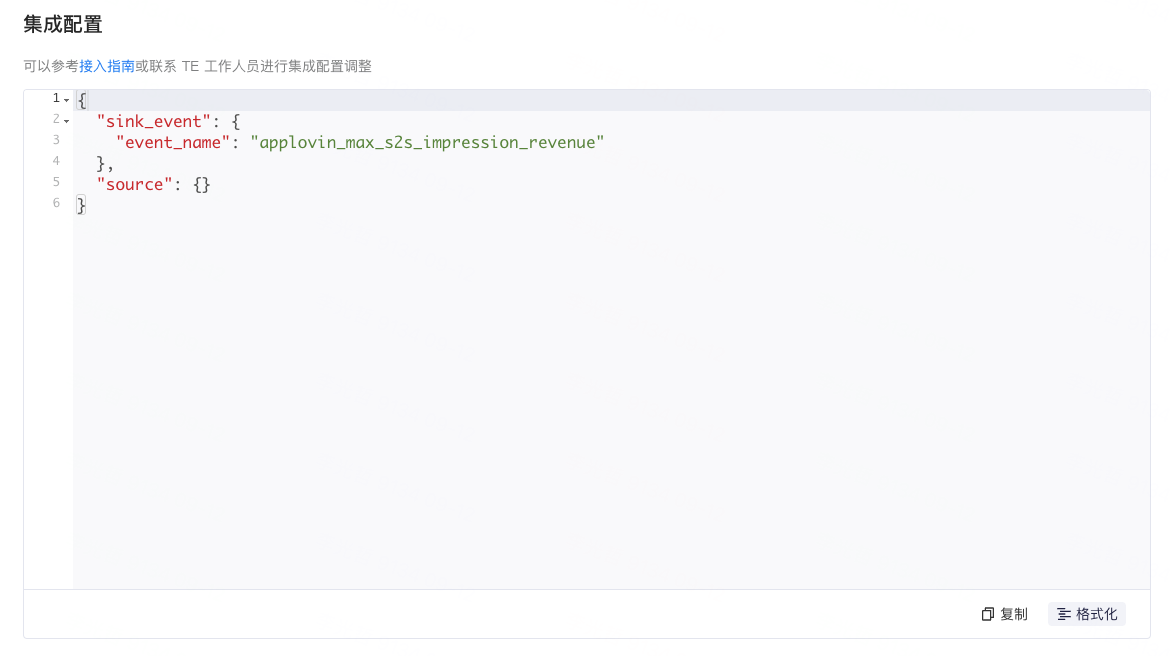 - 登录 TE 后台,进入三方集成模块,新增 AppLovin MAX S2S Impression Revenue API 方案,并完成相关配置