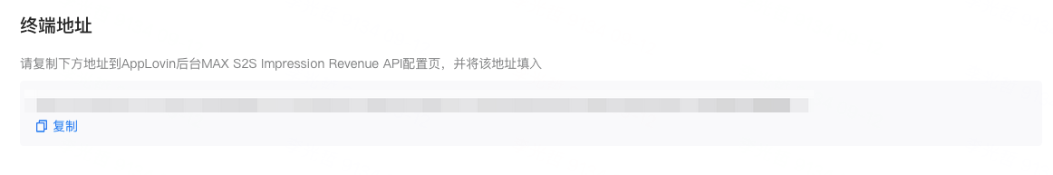 终端地址中展示了 TE 系统接收 AppLovin 回传数据的地址。请您直接复制该地址,在接下来进行 AppLovin 回传配置时,请使用该地址作为回传的主要地址: