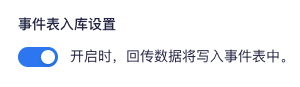 打开「事件表入库设置」开关后,回传的数据都将写入到事件表中,我们建议您开启事件数据入库。